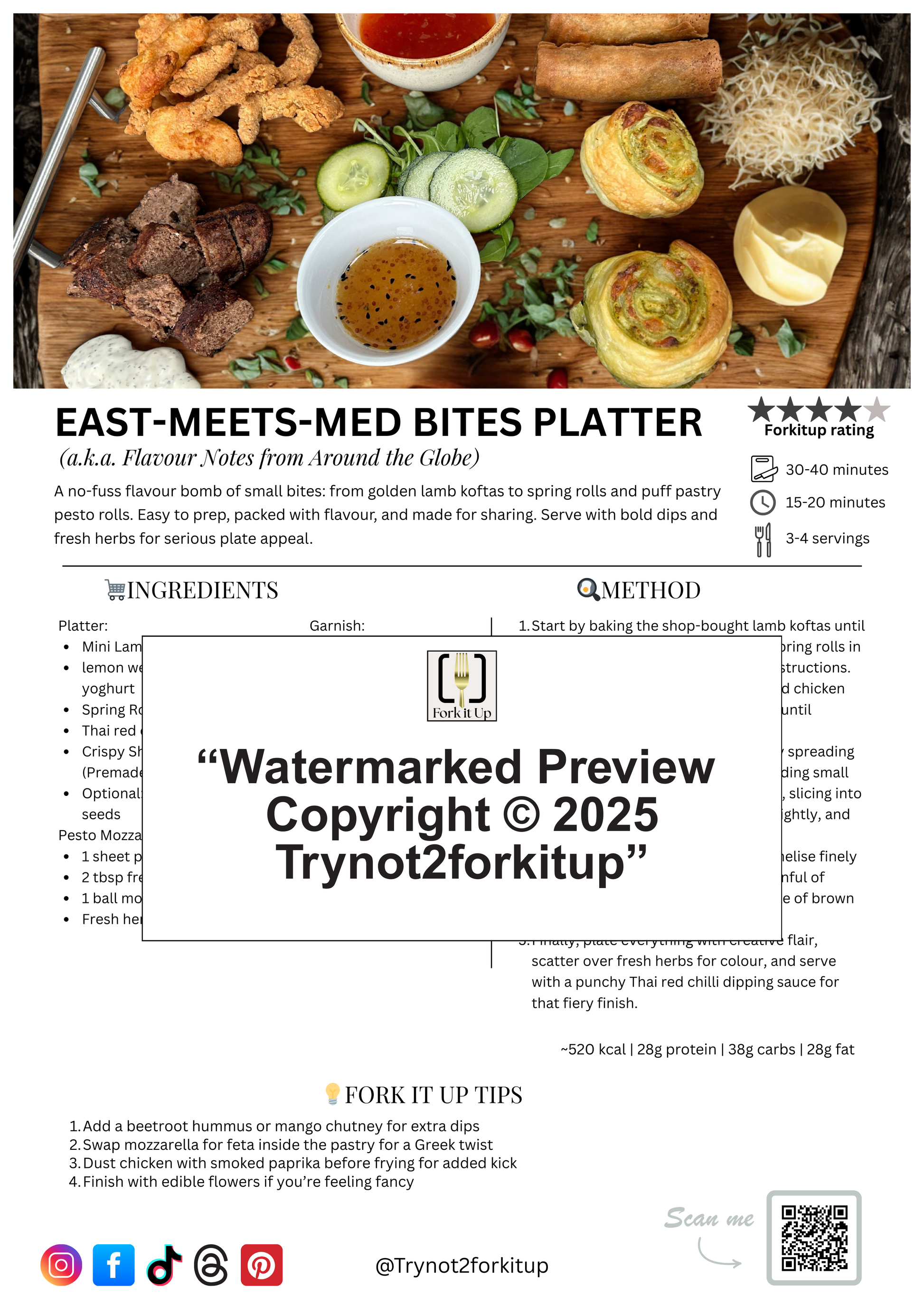 A no-fuss flavour bomb of small bites: from golden lamb koftas to spring rolls and puff pastry pesto rolls. Easy to prep, packed with flavour, and made for sharing. Serve with bold dips and fresh herbs for serious plate appeal.