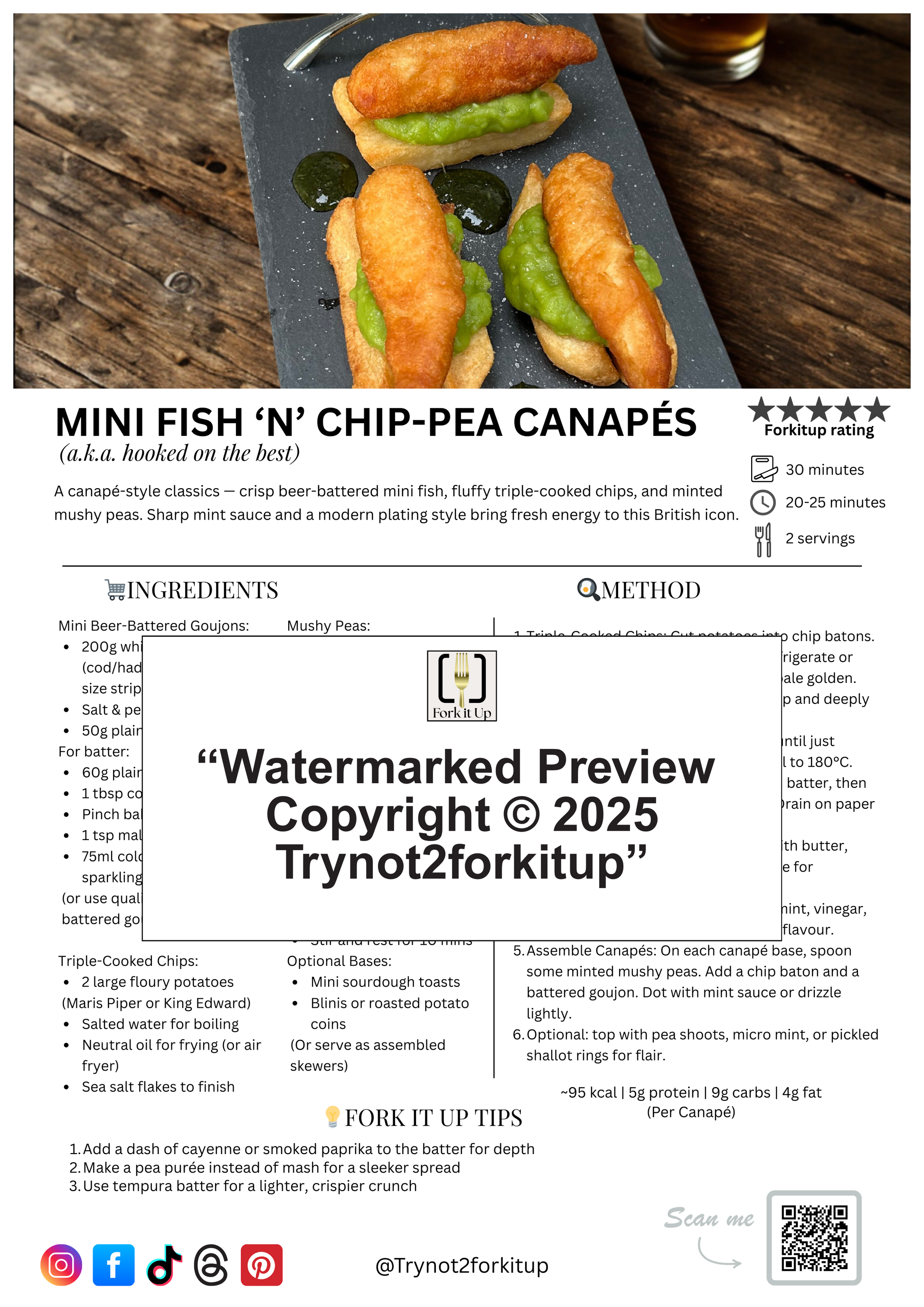 MINI FISH 'N' CHIP-PEA CANAPE'S