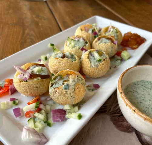 These light and zesty Pani Puri bites pack a serious punch of flavor and crunch. Perfect for snacking or showing off your finger food skills, they combine crispy shells filled with a refreshing mix of chopped onion, cucumber, cherry tomatoes, and sweet mango chutney—all topped with a cool drizzle of creamy mint yoghurt. A deliciously moreish snack that’s sure to be the life of any party.
