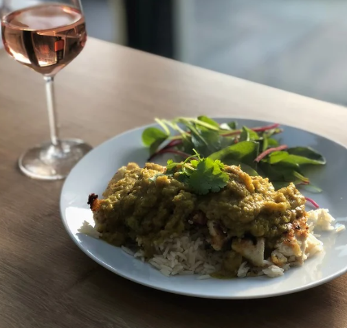 Golden, crispy breaded chicken cutlets served over fluffy rice, crowned with a velvety spinach-herb salsa verde. Silky, punchy, and bursting with botanical freshness — comfort food elevated with green magic.